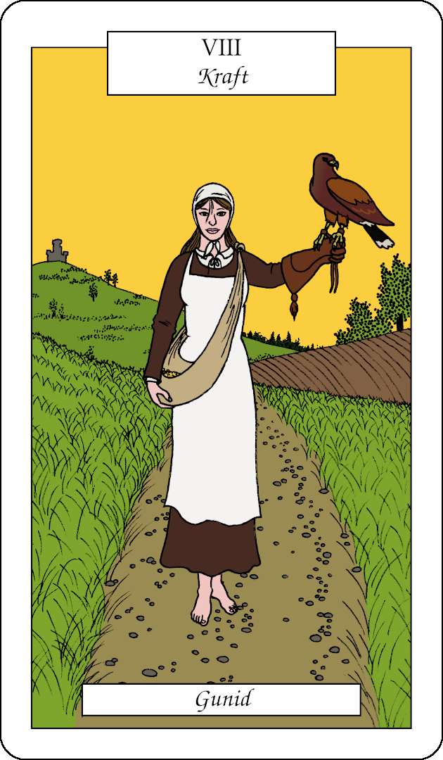 All das prädestiniert sie im Tarot für die Position der Kraft. Kein Hindernis kann so groß sein, dass sie ans Aufgeben auch nur denkt. Auf der weiten Reise um ihres Jugendfreundes Ragald willen lässt sie sich weder von Standesgrenzen aufhalten noch von Ungeheuern, fremden Kriegern, Bergen, Meeren oder der schieren Weite der Welt.